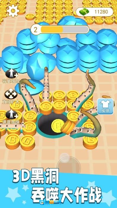 3《3D黑洞吞噬城市》是一款围绕黑洞吞噬展开的冒险挑战类游戏,为玩家打造出别具一格的冒险体验。在游戏里,玩家将扮演一个黑洞,通过持续吞噬周边的各类物体来壮大自身力量,无论是细小的物品,还是恢宏的建筑,世间的各种事物皆能成为被吞噬的对象。在这个过程中,玩家还能吞入金币、元宝等奖励。丰富多样的吞噬场景与畅快淋漓的战斗情景,让游戏体验更为多元。随着黑洞不断变大,其可吞噬的范围也逐步拓展,为玩家带来源源不断的新鲜感与挑战欲望。