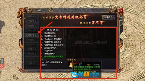 1、服务器开启后即刻进入游戏,迅速升至80级,优先完成青铜会员任务。