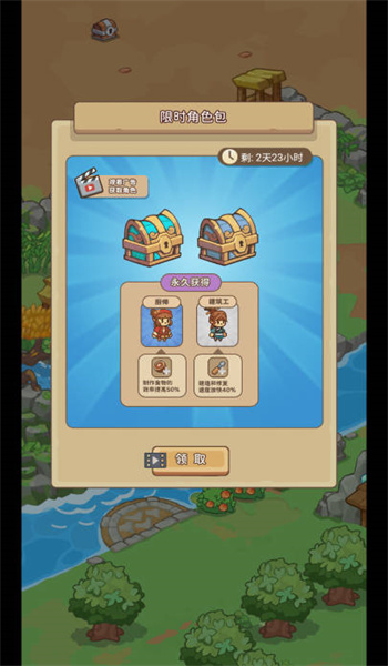 1、玩家进入游戏能够点击点击采集资源,获取基础物资,以便后续建设。、