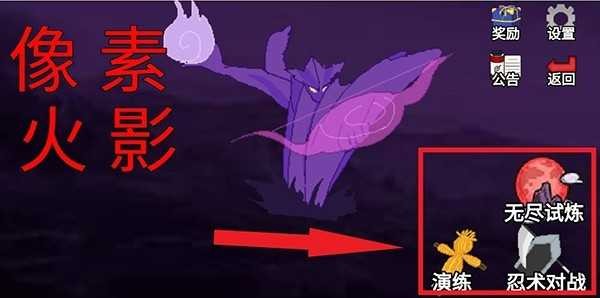 在无尽模式、演练模式以及忍术挑战三种玩法中,挑选自己喜欢的对战方式开启战斗。