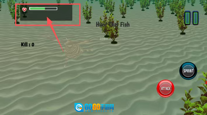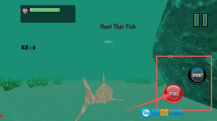 2. 点击红色的“Attack”按钮对目标发起攻击,也可以按下蓝色的“Sprint”键加速向目标靠近。
