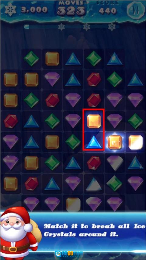 2、在游戏里,玩家依据下方提示,切换并匹配3个及以上冰晶,通过连击来达成消除目标。