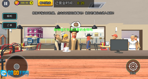 4、点击“开始营业”,客人们便会陆续走进店内。部分客人会点大宝,这时你得迅速制作食物。
