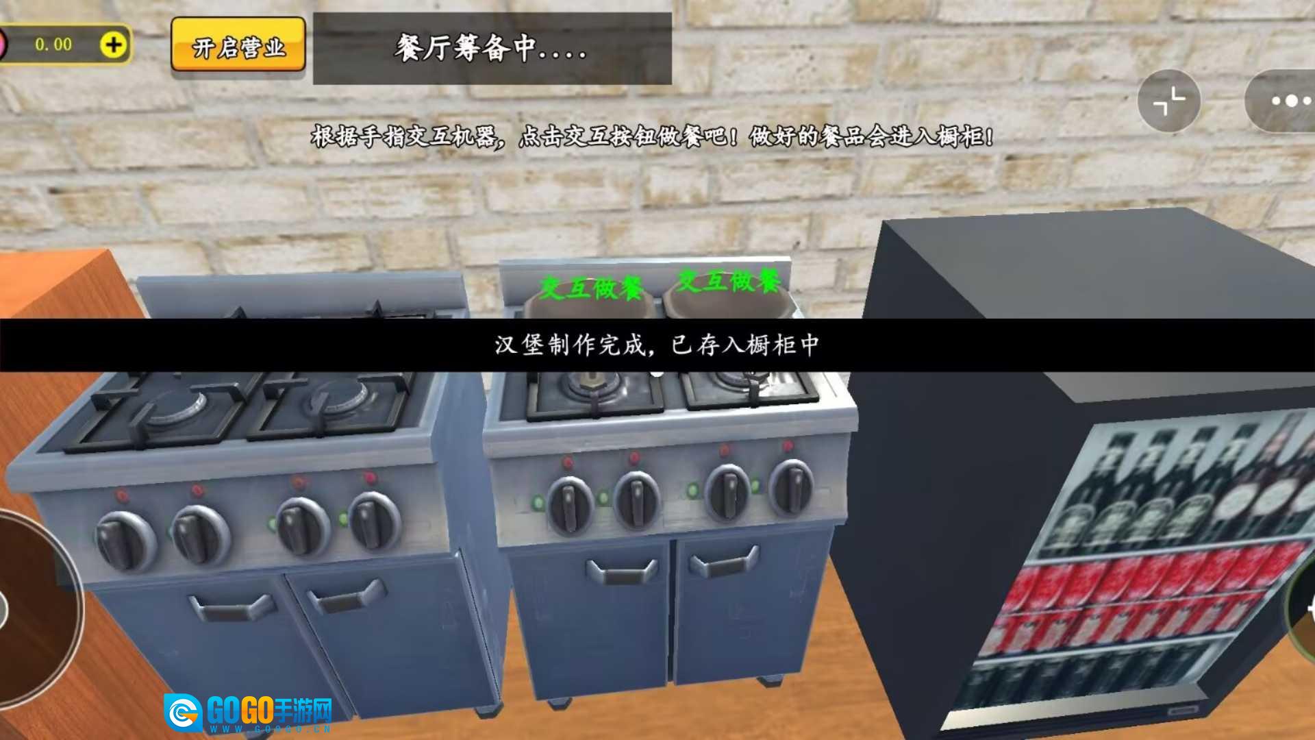 3、借助手指交互机器,点击交互按钮制作餐品,制作完成的餐品会被放置到橱窗中售卖给顾客。