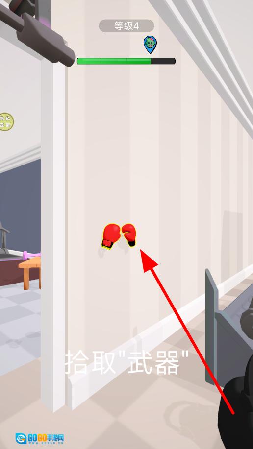 2、获取武器时,需留意场景中出现的武器,靠近后执行相应操作,即可获得拳套武器。不同武器具备不同的攻击效果。