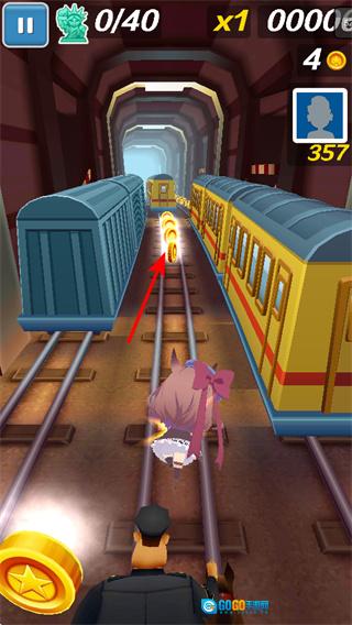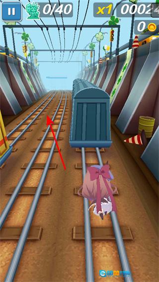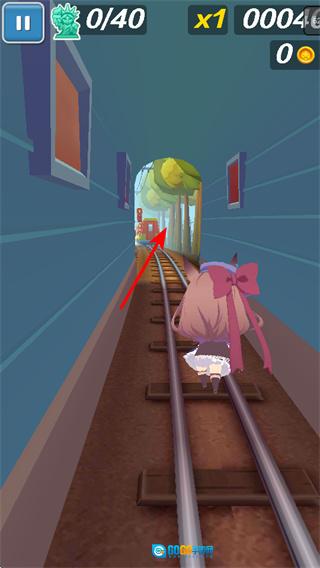2、进行轨道切换操作,使角色转移至不同轨道,以此避开火车与障碍物,从而得以持续前行。