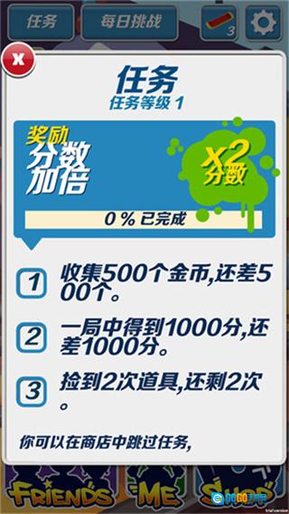 4、双倍得分道具:在跑酷时,能拾取“双倍得分”道具。使用该道具后,得分倍数会在短时间内提高,有助于快速积攒高分,提升获得优异成绩的几率。