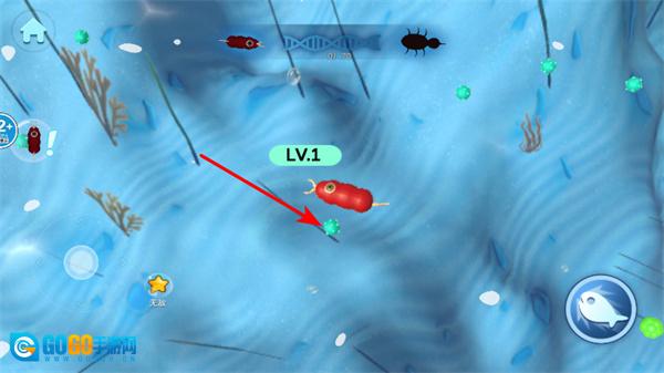 2. 捕食绿色颗粒,在虫子捕食场景中对绿色颗粒进行控制,以此积累资源,这属于基础操作。