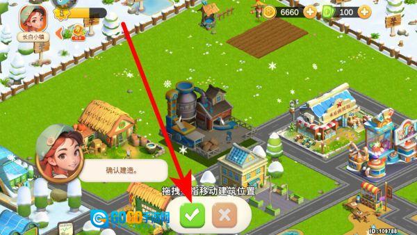 3、在建造建筑过程中,如果您对建筑所处位置不太满意,能够通过拖拽的方式来移动建筑位置。待位置确定好之后,点击对勾按钮进行确认建造,以此完善农场设施。