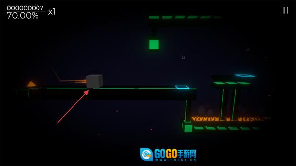 1. 开启游戏后,对方块进行操控,使其在平台上移动。此时,屏幕左上角会呈现分数与倍数,像0000000007x1 ,其中70.00%或许代表着通关进度。