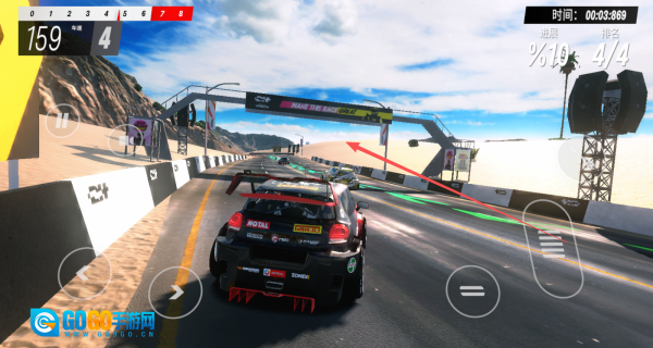 1. 挑选相应赛事,驾驶已解锁的赛车驶入赛道,借助踩油门以及控制方向来完成基础的竞速行驶。