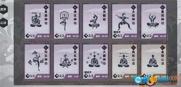 首先列出需要参研的内容:洗髓经、大藏神功、金刚心法(人称小大藏)、阳炎神功、刺杀要术(小阳炎)