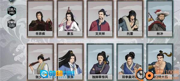 在游戏里能够获取辛弃疾、素玉、文天祥、托雷、林冲、张少爷、张良,以及独脚草惊风、双拳震河洛、胸口碎大石这些角色或事物。