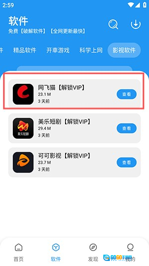 2、随后随意挑选一款你所需的应用,在此以“网飞猫”作为示例。
