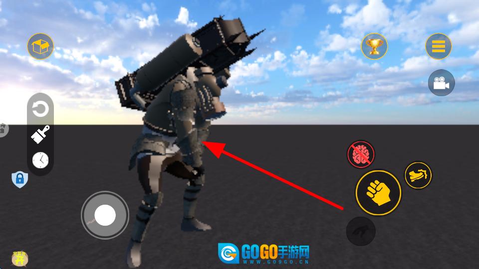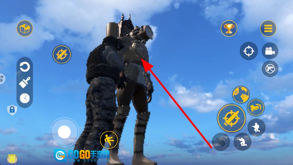 1、借助虚拟摇杆来操控角色移动,朝着机甲所在方向滑动摇杆,使角色逐渐靠近机甲。