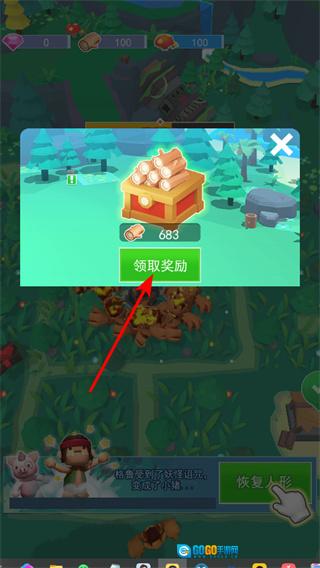1、轻点领取奖励,即可获得木材资源。木材资源在游戏里是极为关键的建设资源,可用于升级建筑以及解锁功能。