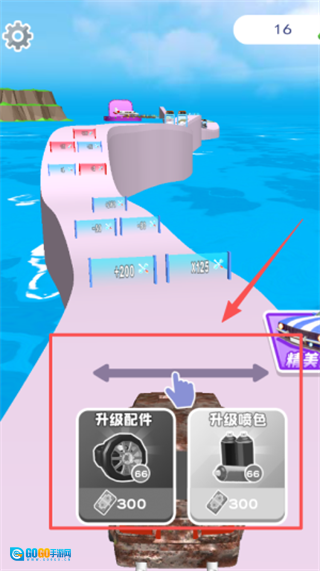 1. 借助虚拟方向盘以及油门刹车来操控车辆,凭借精准操作躲开赛道上的障碍物,同时收集散落的改装零件和金币奖励。