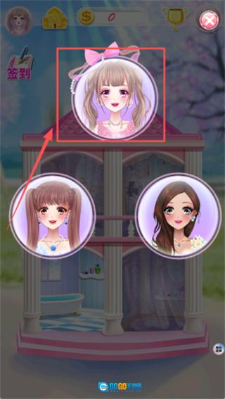 3、当进入角色选择界面时,轻点顶部带有红色边框的头像,然后挑选佩戴粉色蝴蝶结的可爱女孩。