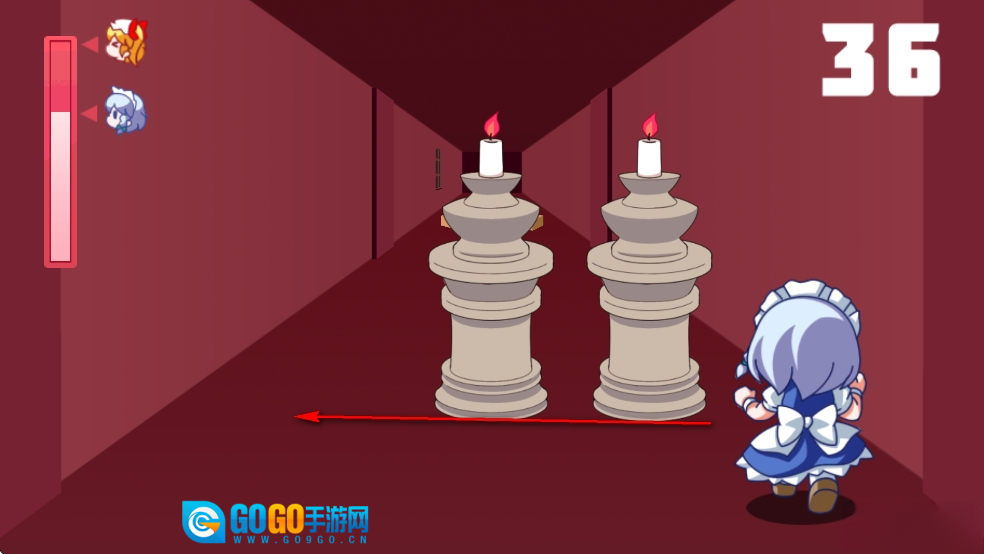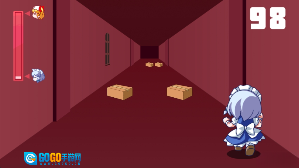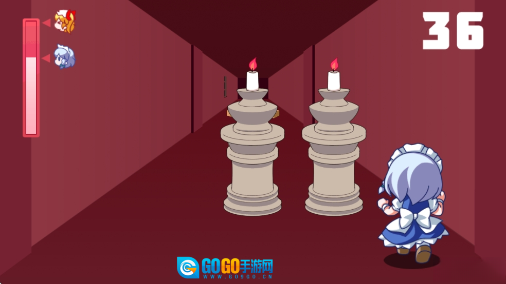《红魔馆追逐战》是一款拥有清新卡通画面的横板跑酷游戏。在游戏里,玩家操控一个可爱的卡通角色展开冒险旅程。途中,诸如盒子、柱子、雕像等形形色色的障碍物会不断出现。玩家必须凭借敏捷的操作,控制角色左右移动与跳跃,以此躲避障碍物,最终抵达终点,并挑战boss。