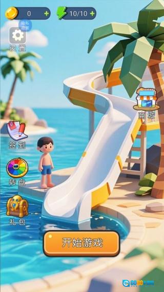 1. 在本站下载并安装游戏,进入主界面后,点击“开始”开启水滑梯比赛。