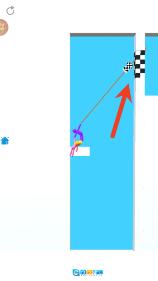 3、把握好恰当的时机松开手指,把角色弹射出去,借助墙壁的反弹作用绕开障碍物。