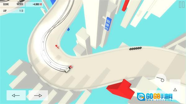 2、学会转向操控,利用左侧的转向按钮,驾驭赛车在赛道上转向,以契合不同的道路布局。