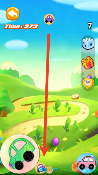 1、进入游戏后,第一步是通过新手引导来学习基本操作:在场地中,用手指拖拽相同的可爱汽车,让它们彼此靠近,这样就能合成为一辆更高级的新车型。