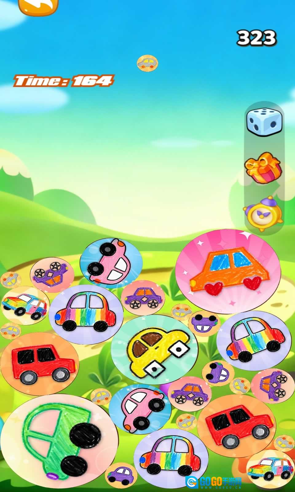 2、核心玩法为经典的合成升级模式,即把两辆一模一样的小汽车合并,从而得到一辆等级更高的新车。