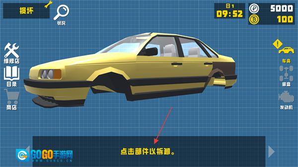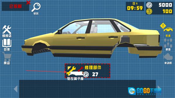 2、来到修理界面,依照提示点击部件进行拆卸,找出损坏的左后翼子板部件并点击将其拆卸。