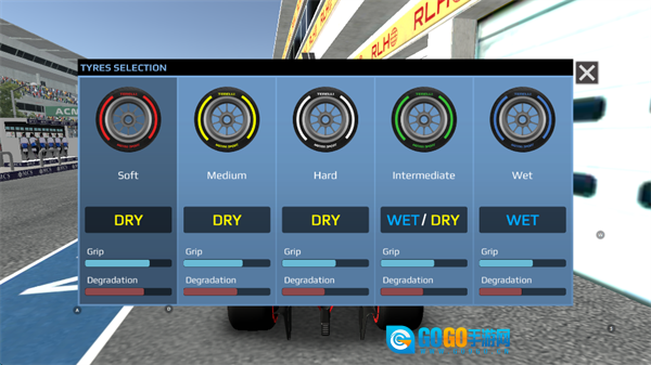 6、提供了五种轮胎供您挑选,您可依据轮胎的耐久度与抓地力来做出选择。