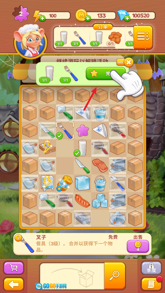 4、当通过合成获取到相应的食物或物品时,订单即可完成。