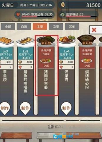 3、持续反复制作同一道料理,它会逐步升级,助你解锁新的菜式。举例来说,当【炸鸡块】等级提升至6级,你便能够制作【猪肉炒生姜】。