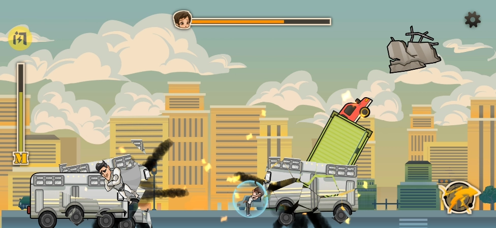3、城市危机四伏,高空坠物防不胜防,汽车疾驰而过,更有各式各样的敌人会对他发起攻击。