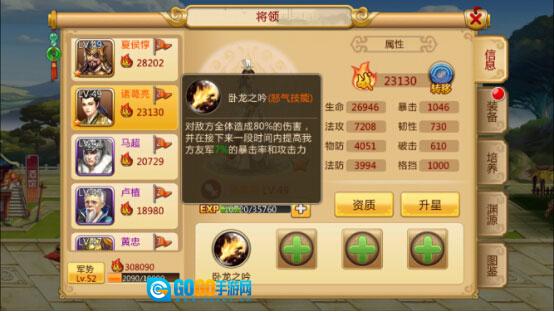 若主公身为谋士,阵容方面,前排只需主公一人,后排带上典韦、司马(登录第二天赠送)以及诸葛亮(登录第七天赠送,前几日可用首次抽到的紫将过渡),这套回血流阵容相当厉害。典韦的怒气技能能为全体额外增添血量,与谋士主公的回血技能相配合,主公和司马的群体伤害(aoe)就足以让敌方难以招架。再加上诸葛的怒气技可增加暴击率与攻击力,如此一来,对手大概率心态会崩。