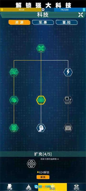 获取如氪金、能量之类的资源,部分特殊的资源卡可执行抓牌、弃牌等操作。
