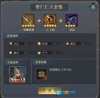 曹仁的仁王套装包含:凤嘴凰翼、仁王铠以及奔雷。