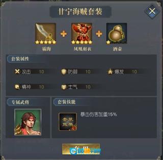 甘宁的海贼套装包含:霸海、凤凰羽衣以及酒壶。