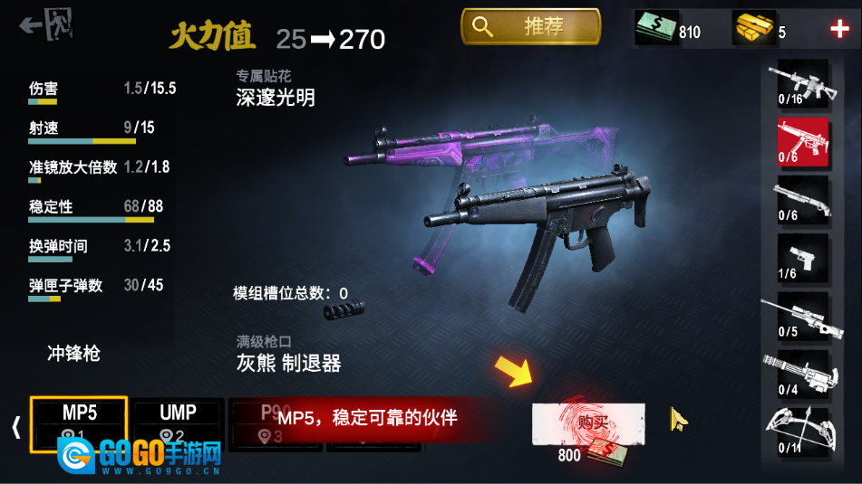 7、拿刚刚获胜所得的钱去购置武器,这把MP5可是稳定又靠谱的好伙伴哟!