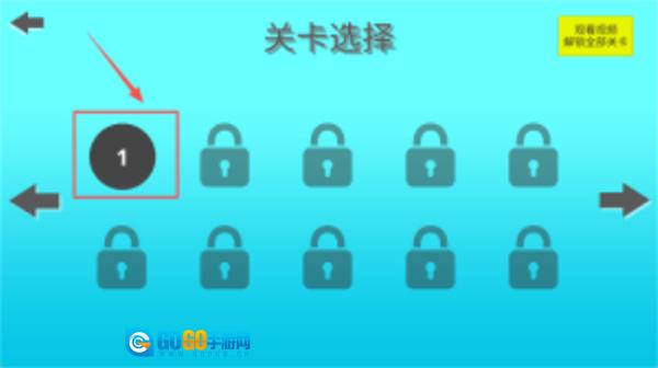 2、当进入关卡选择界面时,仅能点击左上角标有数字1的黑色关卡来开启挑战。