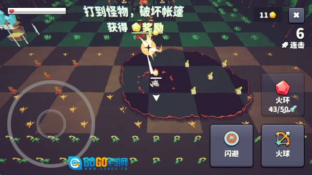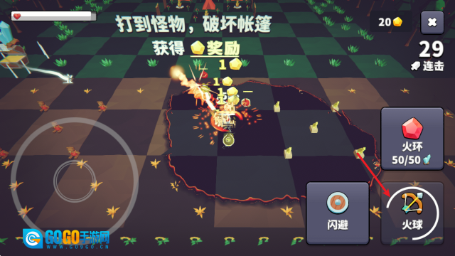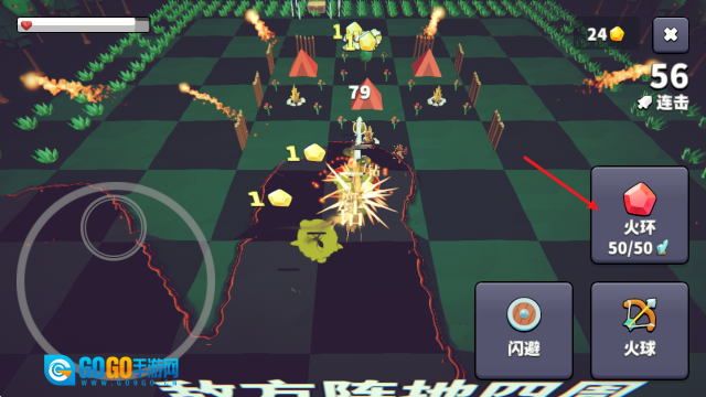 3、在右下角,还能够使用闪避与火球这两个技能。