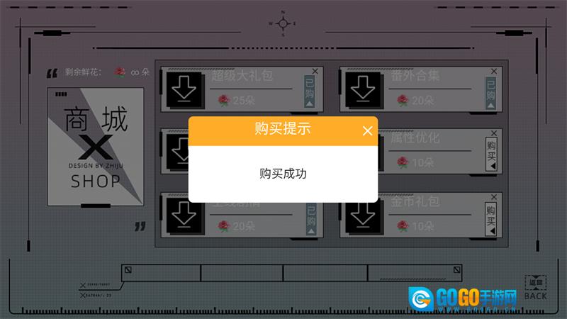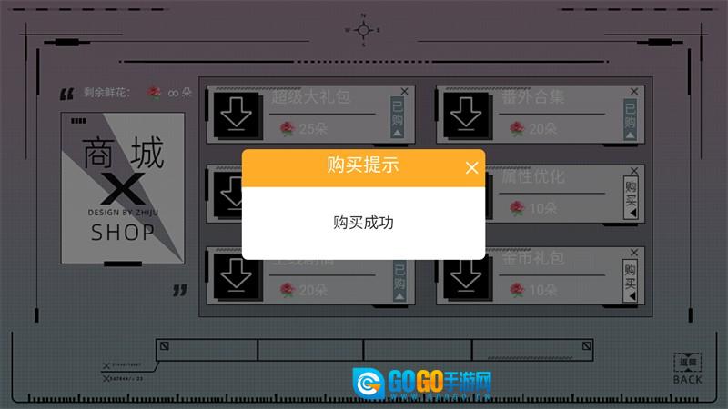 3、进入鲜花商城,可直接选购超级大礼包、番外合集、属性优化等物品。