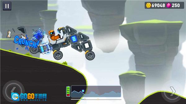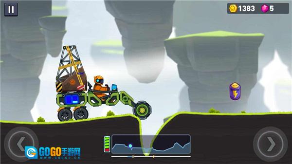 4、在路途中,你得收集金币和电池,否则赛车可能因电量不足致使游戏失败。