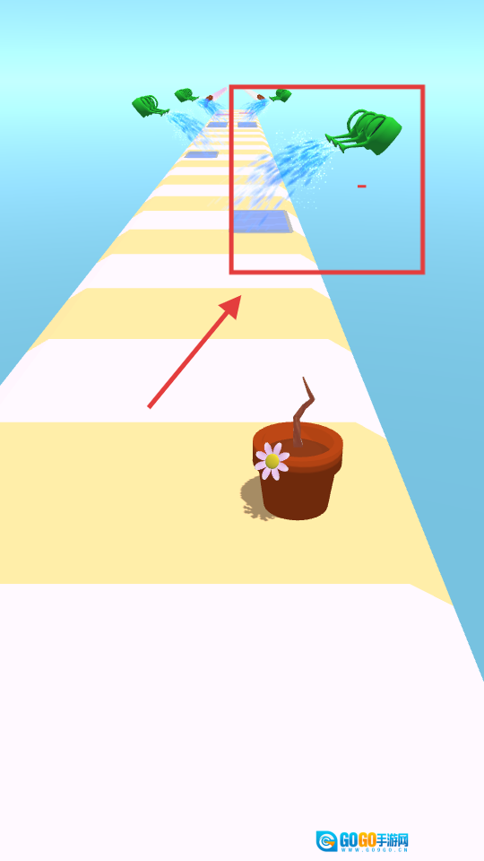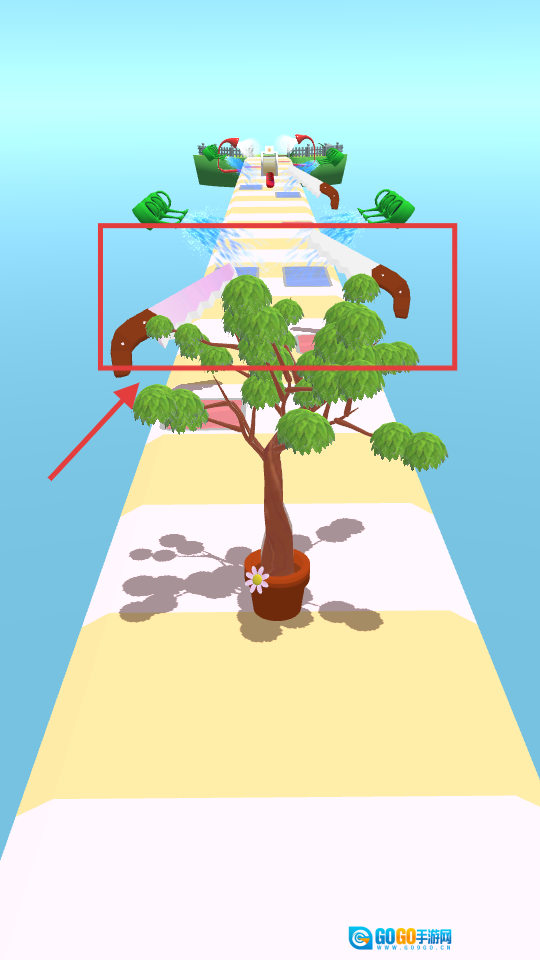 1. 游戏启动,操控那株带着花朵的盆栽树苗在跑道上前行。