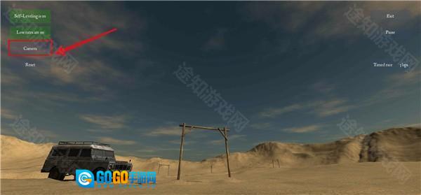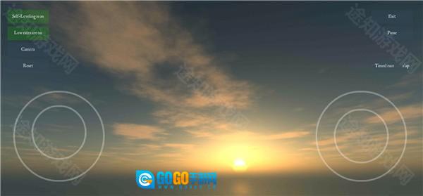 2、进入后,能看到左侧依次为自调平开启、高帧率开启、第三人称视角以及最后的重置;右侧是退出按钮与暂停按钮。