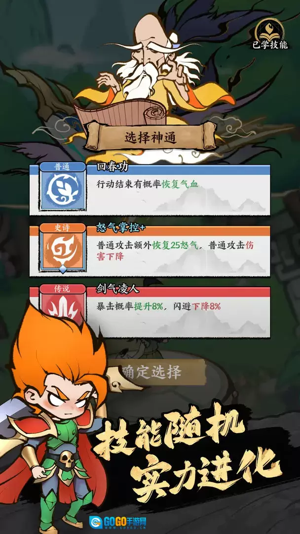 6、玩家赢得战斗后,可从三个技能中选择其一。