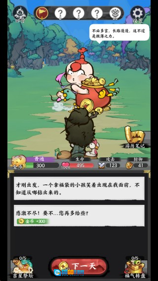 3、轻点“下一天”,开启每日的冒险旅程。