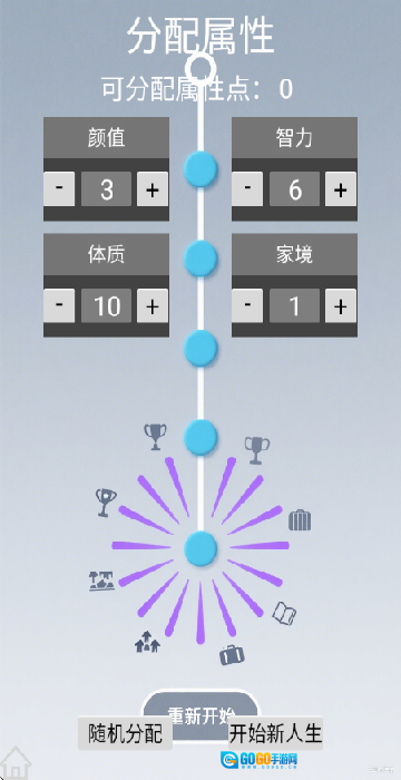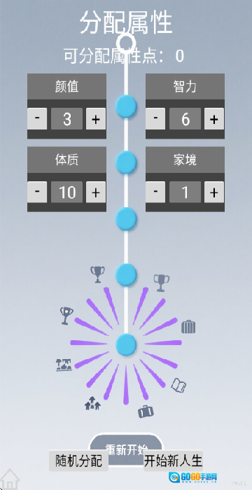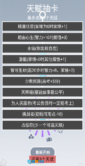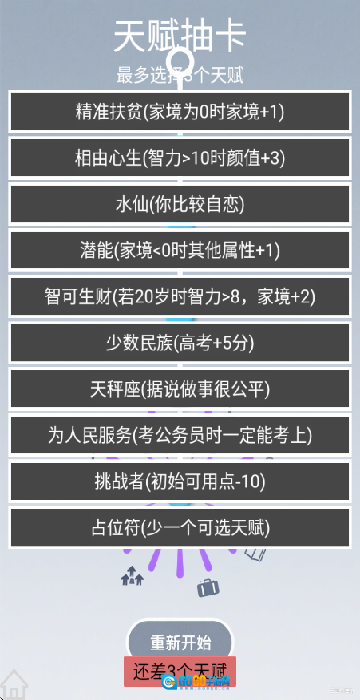 游戏的关键在于天赋挑选。每位玩家在游戏开始之际,都会面对诸多天赋点可供选择。这些天赋包含了形形色色的能力与特质,像智力、魅力、创造力、领导力等等。每一种天赋都具备其独有的技能树,不一样的组合会衍生出各异的成长路线与职业机遇。玩家得依据自身的游戏策略,规划出最优的天赋组合,从而获取更高的人生得分。