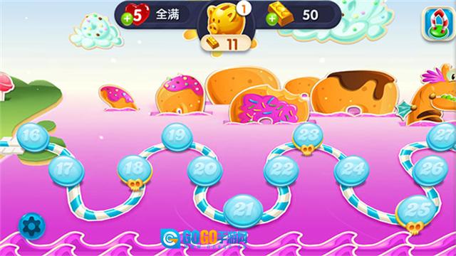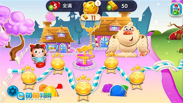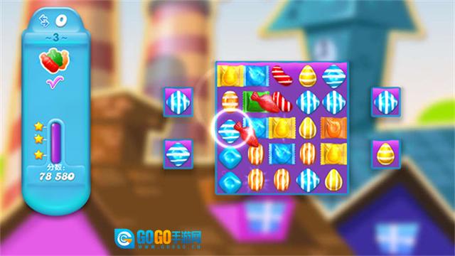 在蜂蜜旁边消除糖果,从而解救被困的糖果熊。