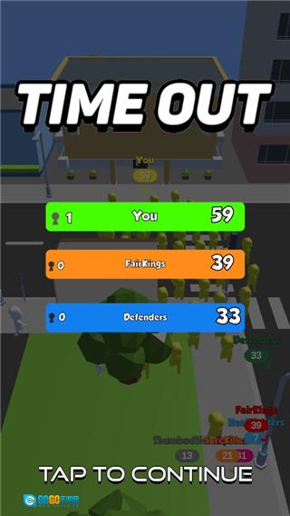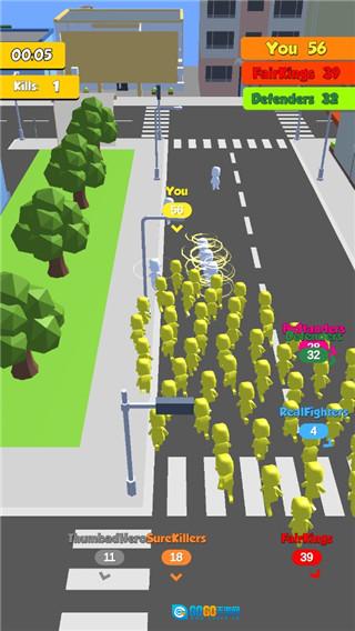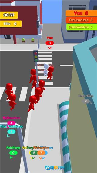 对抗敌人:一旦碰到其他颜色的队伍,两队便会碰撞,人数占优的一方将取胜,并且能够收编对方成员。玩家要凭借人数优势打败对手,同时留意躲避敌方强力单位的突然袭击。
