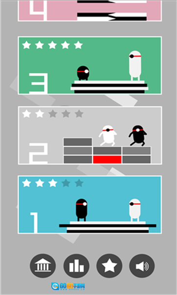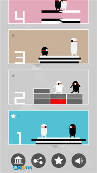 4、在第二关中,要避免被砖块砸到。只需点击屏幕就能移动角色,其移动存在“黑右移、黑白左移、白右移”的规律,这对玩家手速是个不小的考验。